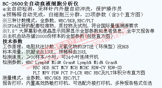 血球分析儀_邁瑞B(yǎng)C-2600_血常規(guī)_全自動(dòng)